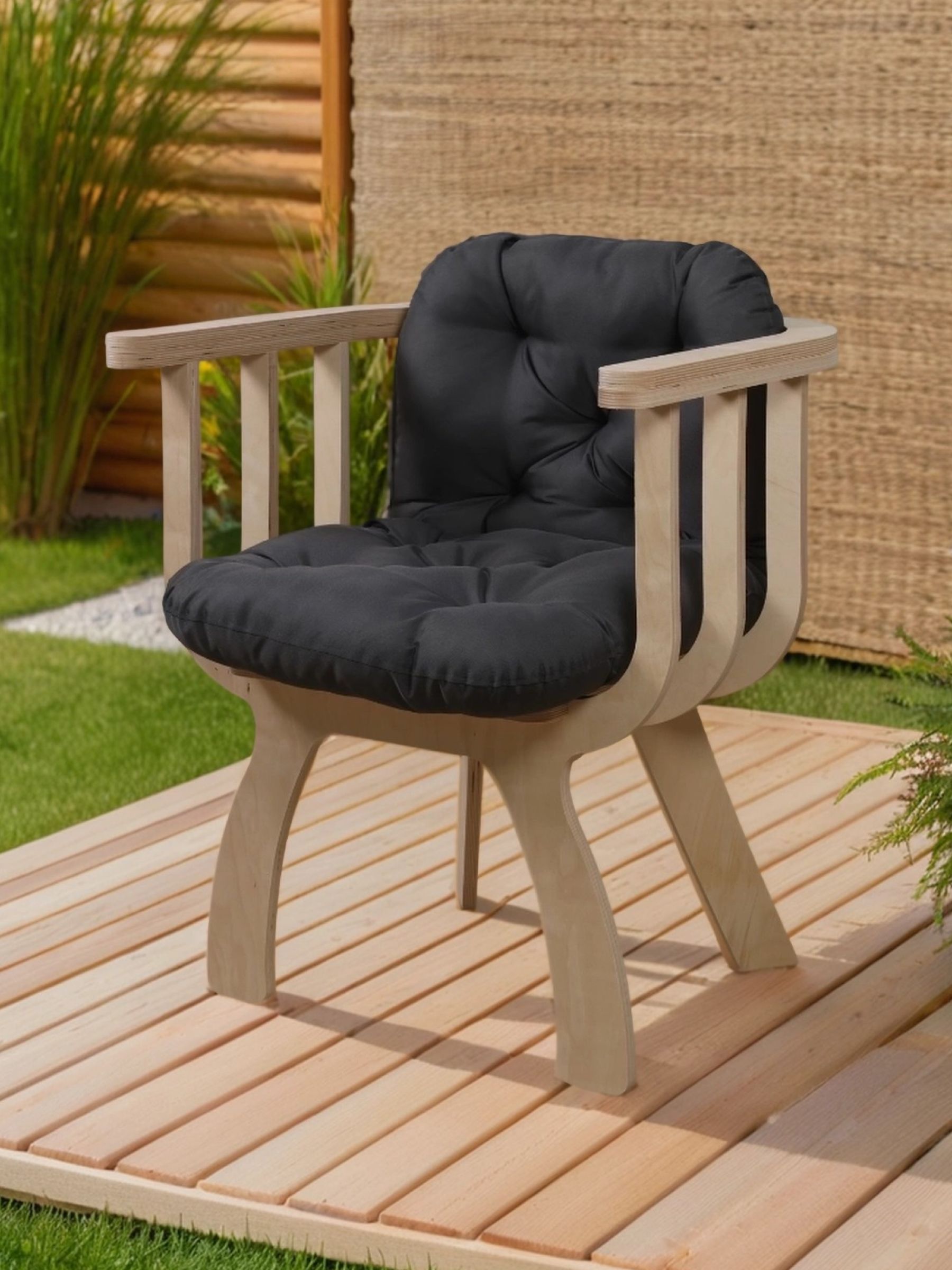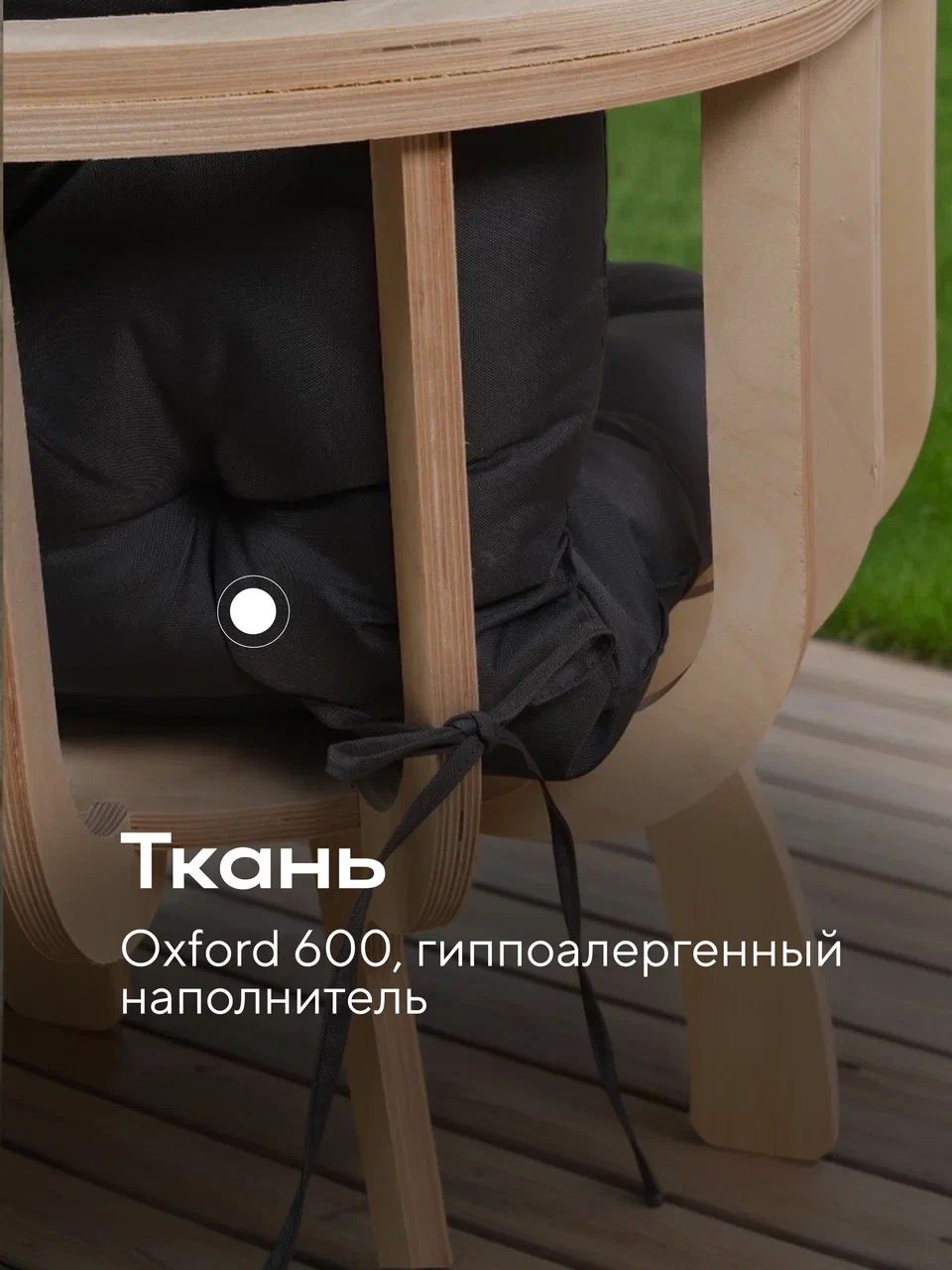 Надежность в основе: Мы используем натуральные материалы, поэтому после шлифовки и нанесения защитного покрытия кресло станет устойчивым к влаге и солнцу и прослужит вам долгие годы.