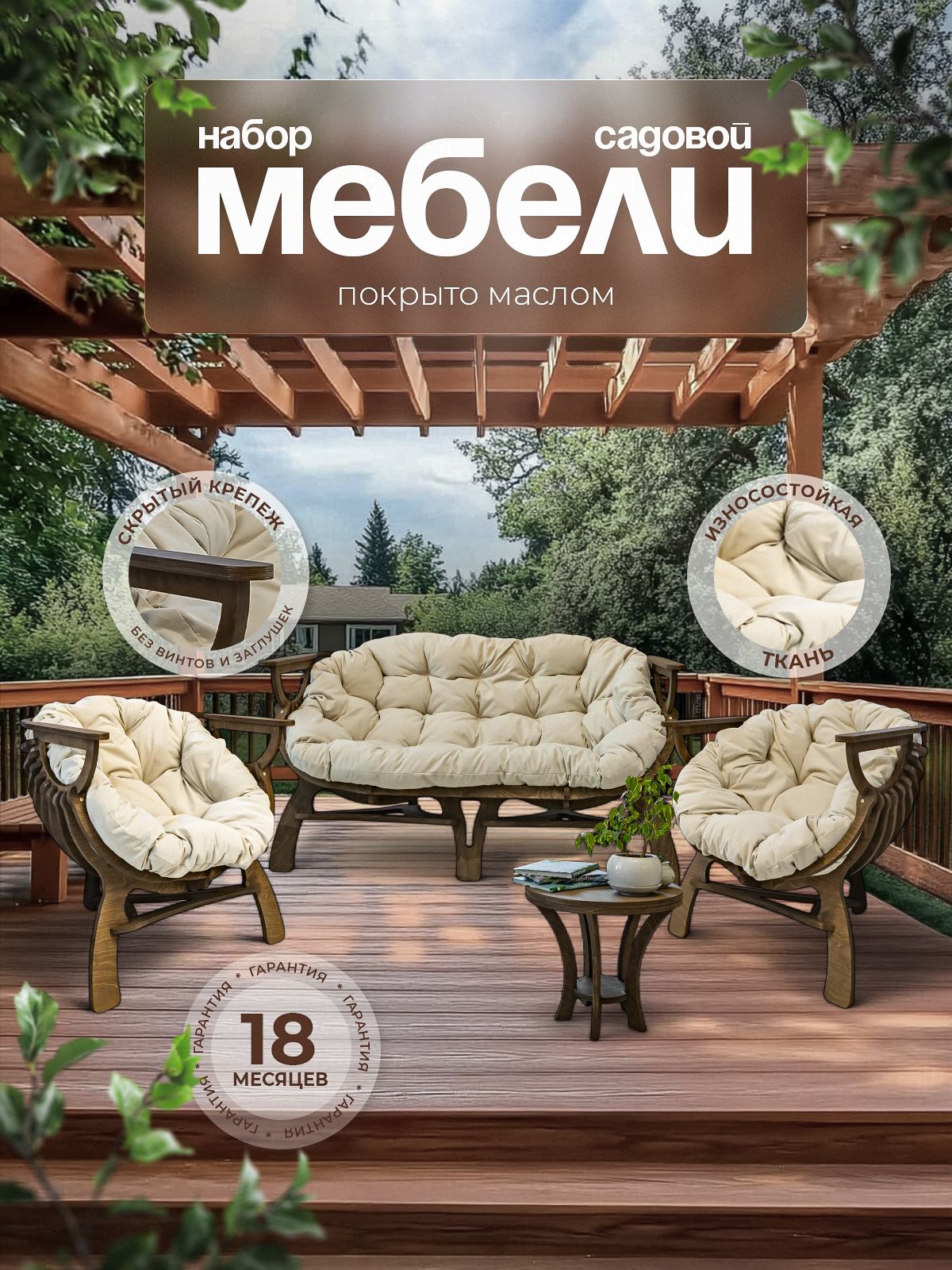 Садовая мебель комплект, состоящий из дивана, двух кресел и журнального столика. Подушка входят в комплект. Диван для сада — отличное
