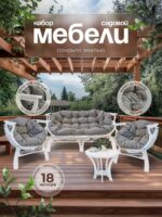 Садовая мебель комплект, состоящий из дивана, двух кресел и журнального столика. Подушка входят в комплект. Диван для сада — отличное решение для посиделок с друзьями. Кресло садовое — отличное решение для отдыха в тени. Если вы ищете мебель на террасу — этот комплект создан специально для вас. Так же наш набор садовой мебели идеально впишется в ваш интерьер, если вы ищете мебель на балкон, мебель в баню или сауну. Легкая сборка, устойчивость к погодным условиям и стильный дизайн сделают ваш отдых по-настоящему комфортным в любом месте!