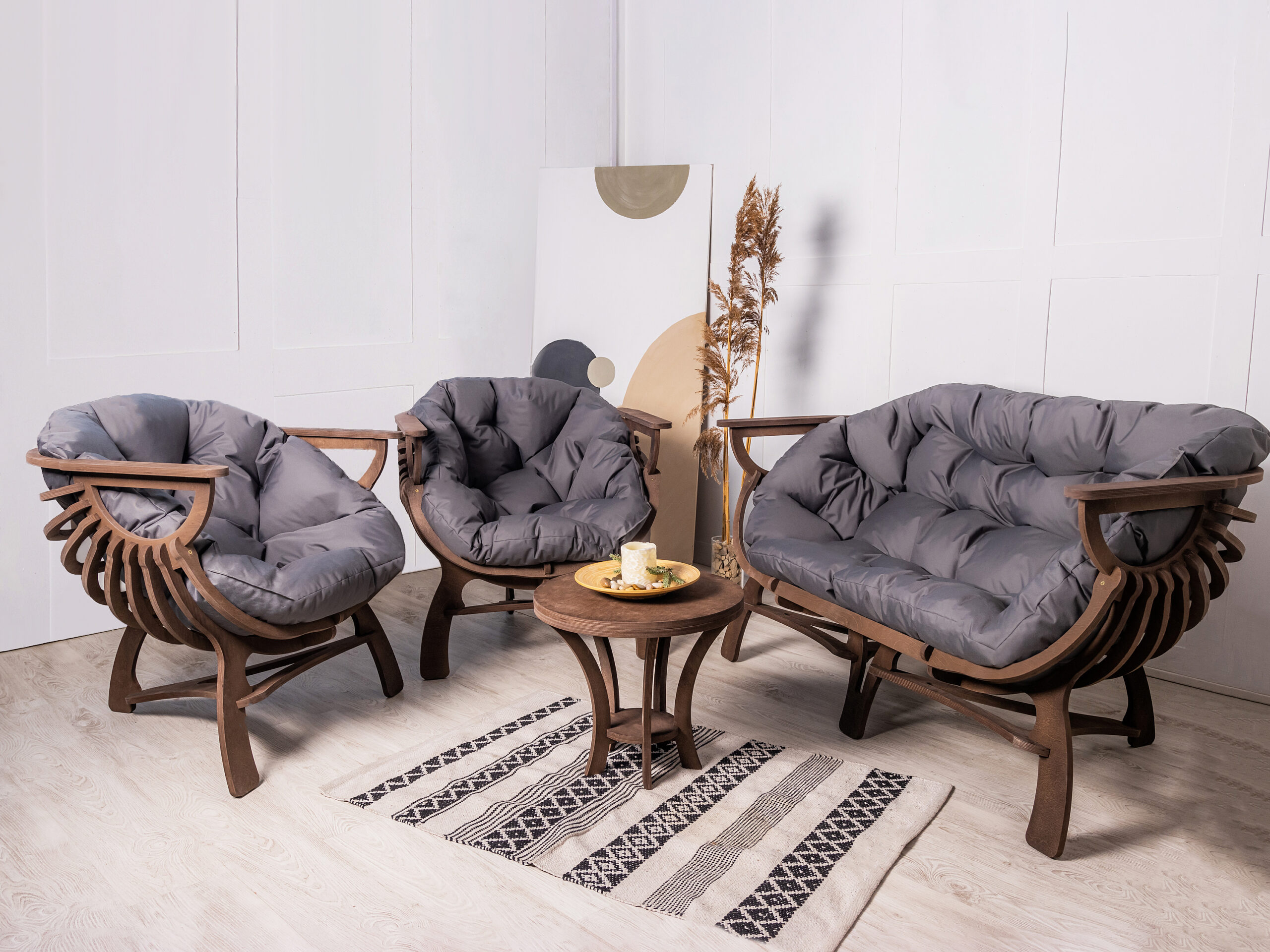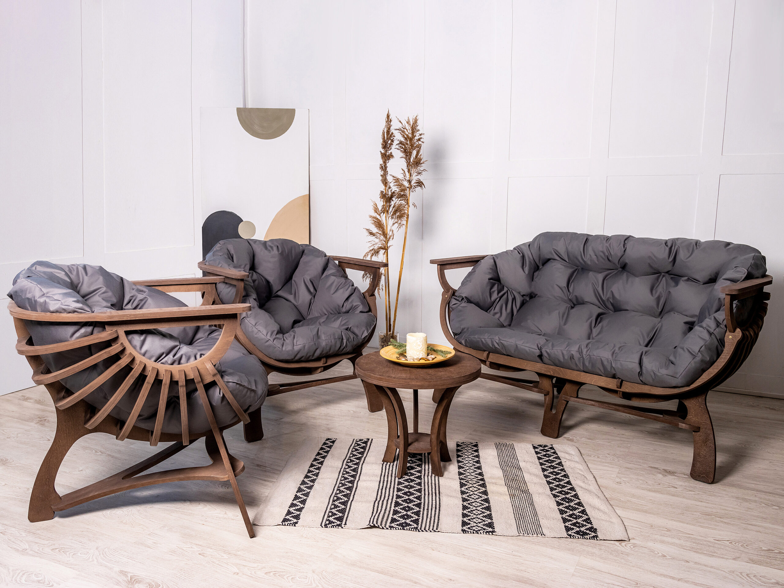 Главная Набор садовой мебели Комплект мебели два кресла, диван и столик не промокаемый серый