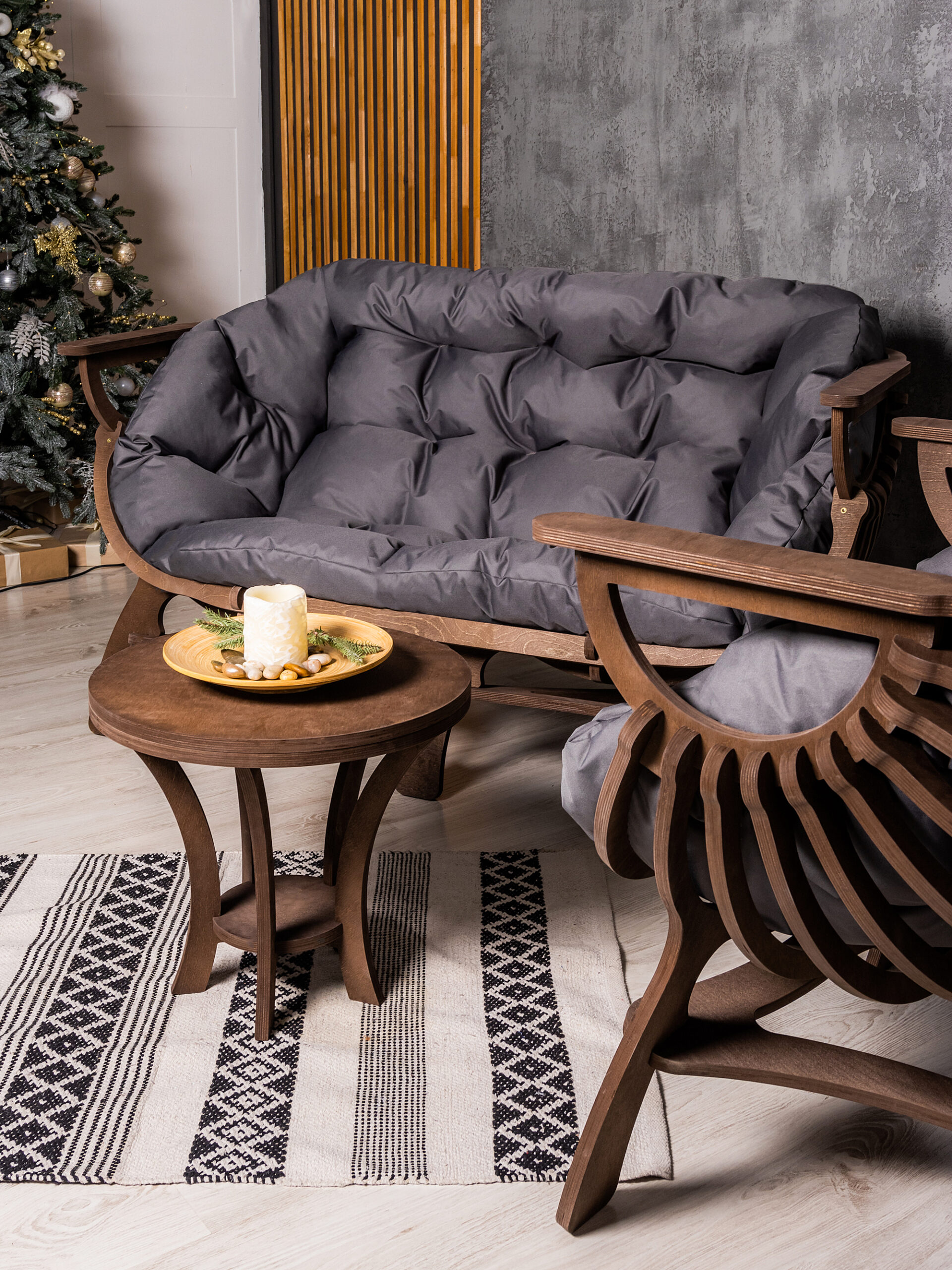 Комплект мебели кресло, диван и столик не промокаемое серый