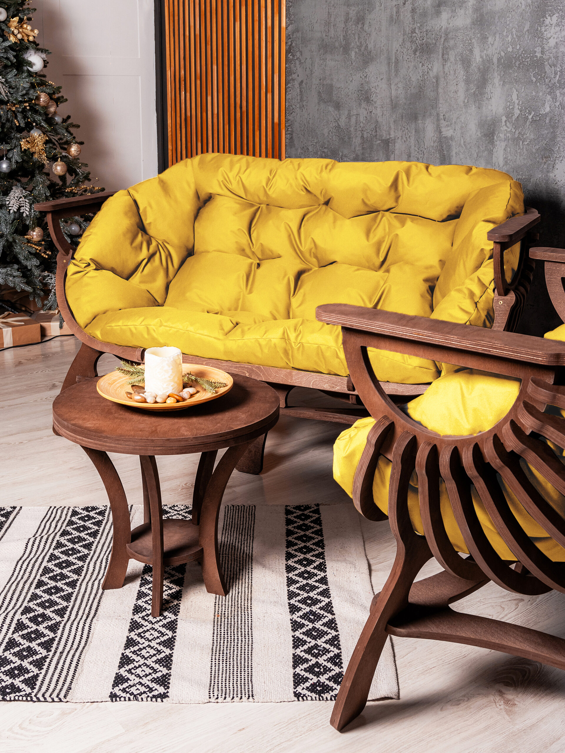 Комплект мебели кресло, диван и столик не промокаемый желтый