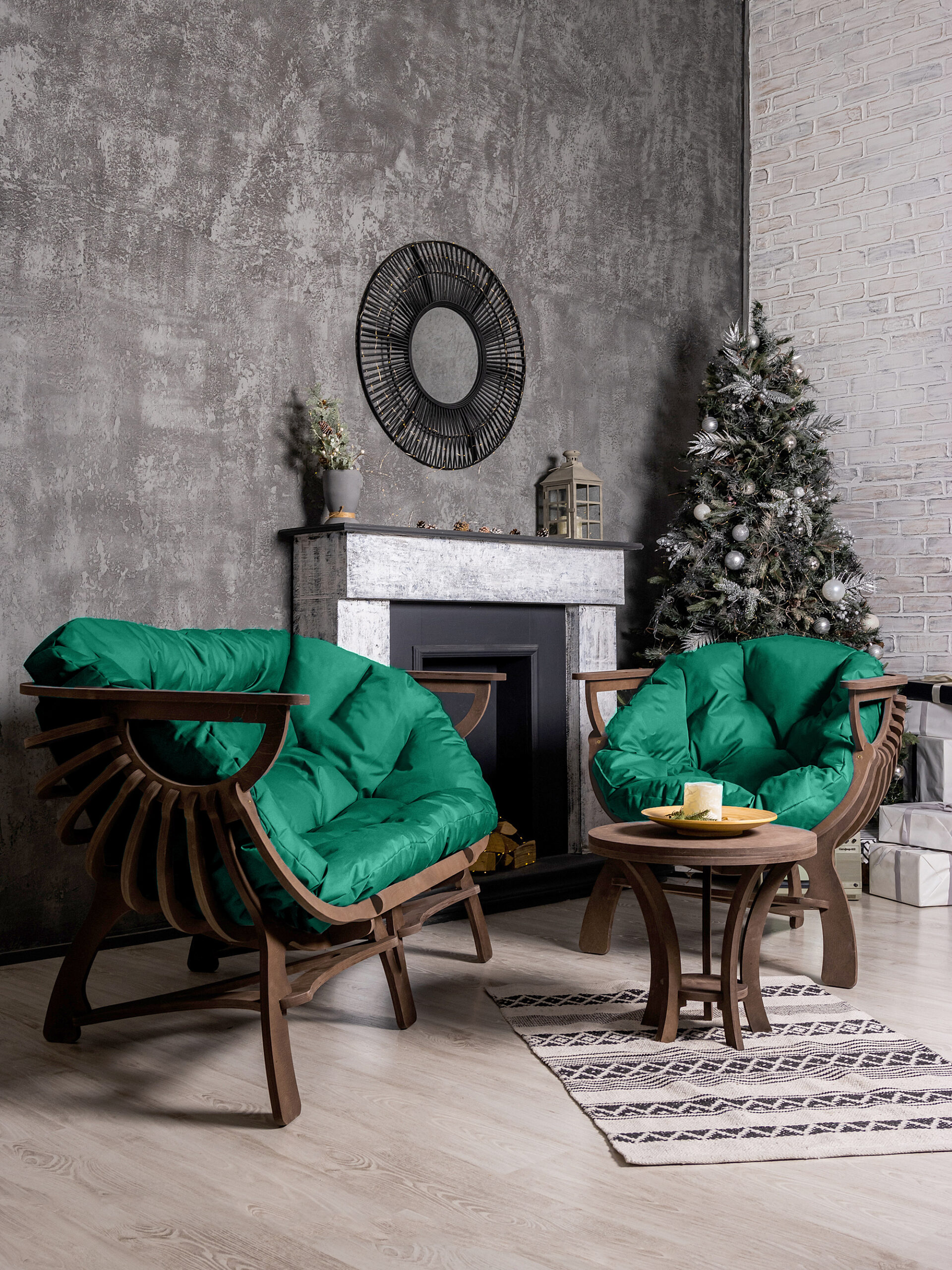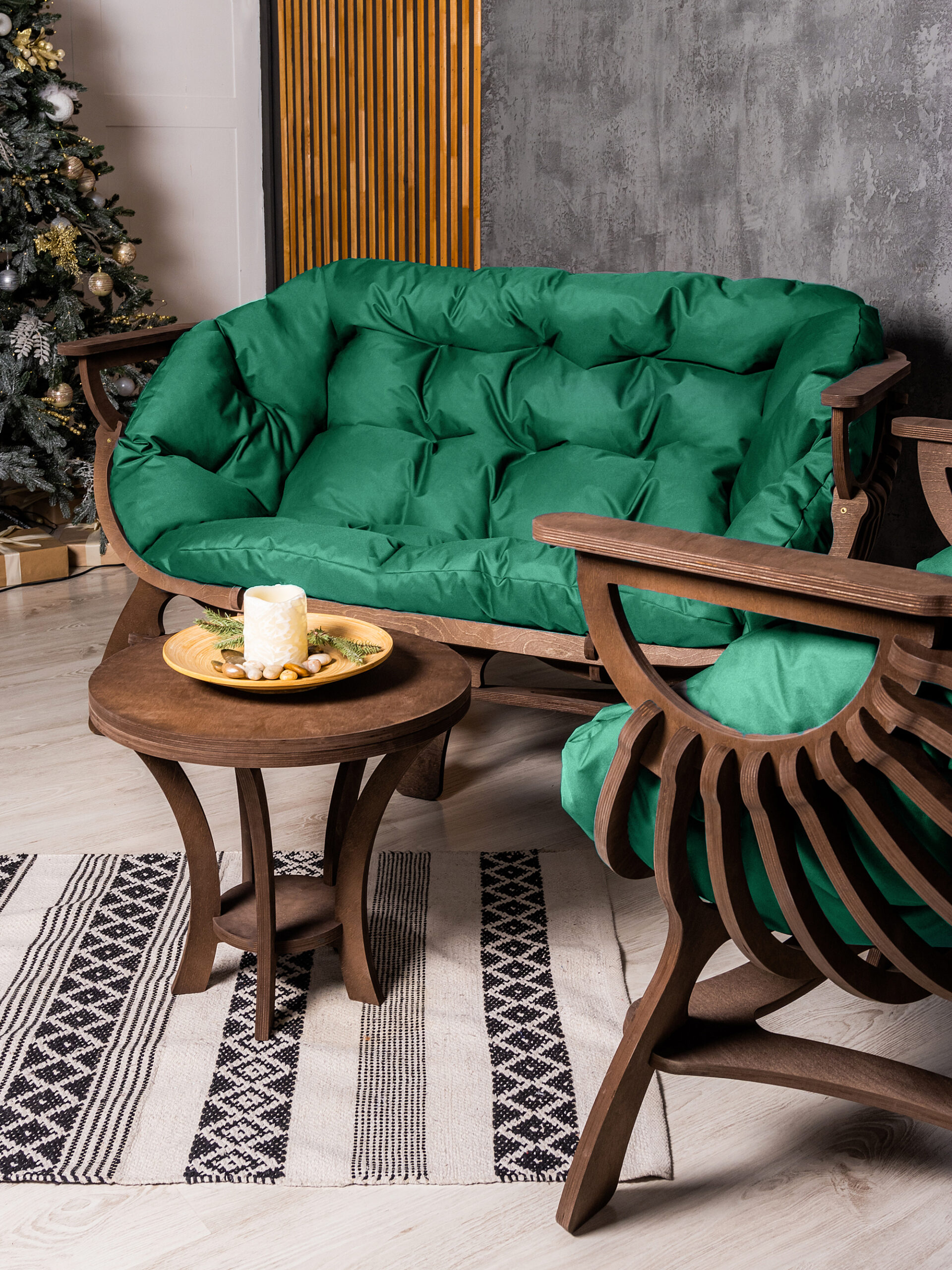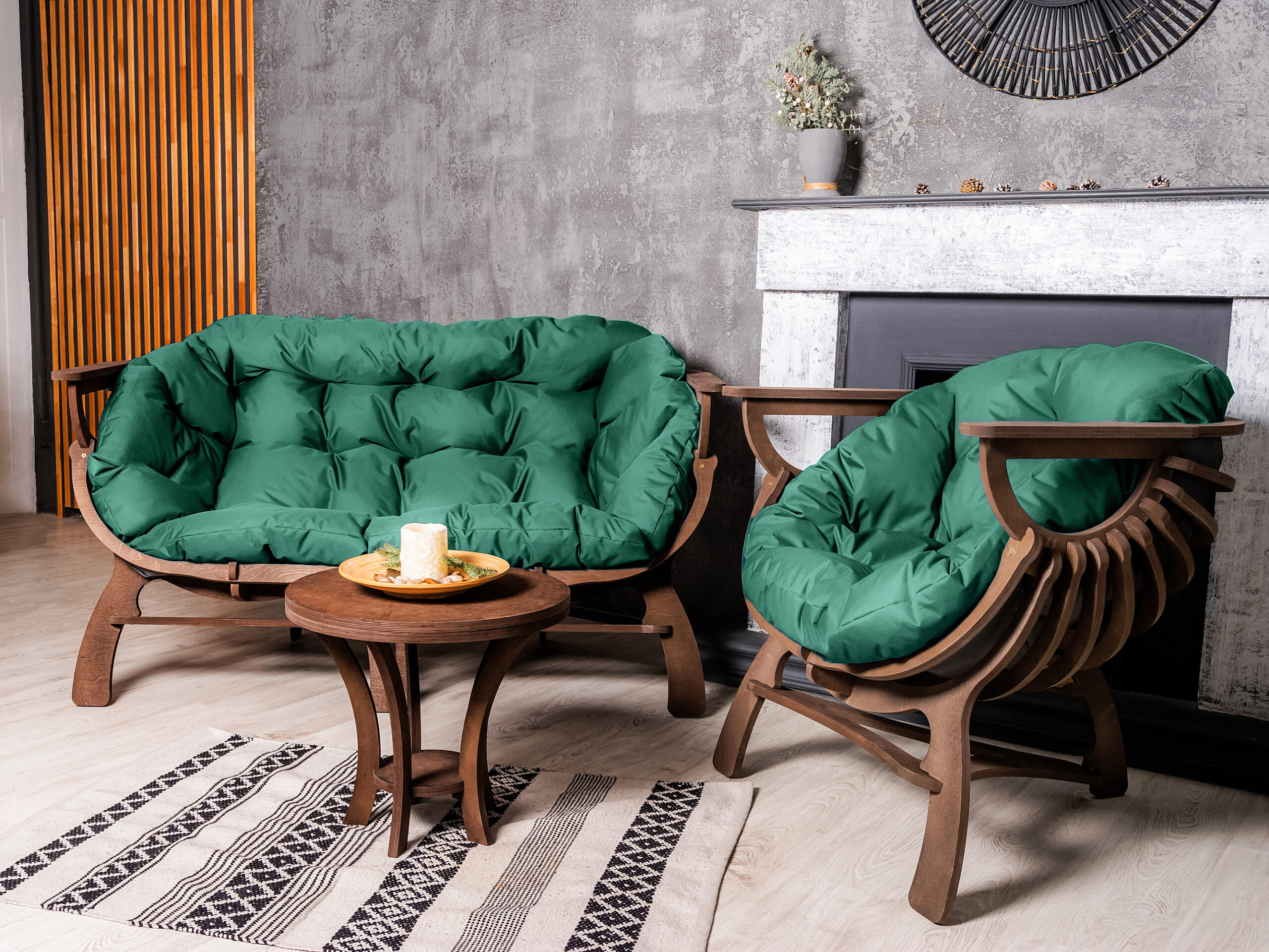 Главная Набор садовой мебели Комплект мебели кресло, диван и столик велюр зеленый